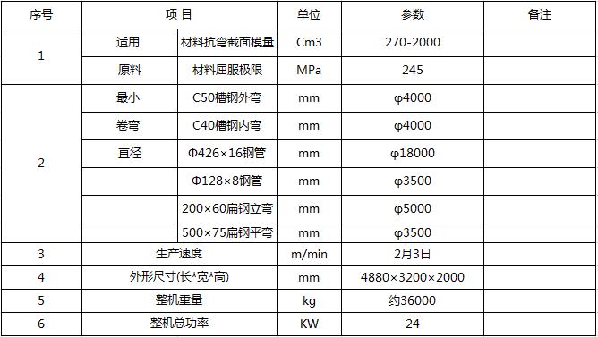JXW500型彎管機由焊接式機架、成形軋輥、左右邊輥支架、液壓系統、托輥裝置、電控系統等組成,在彎管機進行彎曲作業過程中,機械設備通過液壓系統產生足夠大的壓強,再焊接機架以及成形軋輥等裝置的作用下實現工件彎曲,可以將工件彎曲成圓形和弧形等不同形狀;